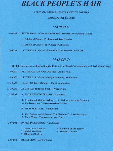 Sponsored by three groups at the University of Toledo: the Africana Studies program, the